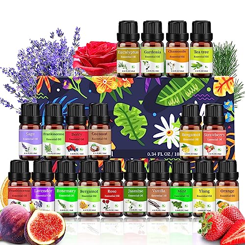 VIPNAJI Set med eteriska oljor för luftfuktare, diffusor, 20 x 10 ml, 100 % naturlig ren aromaterapi aromatisk olja, eterisk oljeset för luftfuktare, diffusor, SPA, massage, tvål.