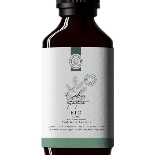 50ml Organiskt Atlasceder Eterisk Olja (Cedrus atlantica) - 100% Ren och Organisk - Äkta Cederdoft för Diffusor, DIY Tillverkning: Tvål, Kosmetik, Ljus, Spray - Organic Cedar Essential Oil