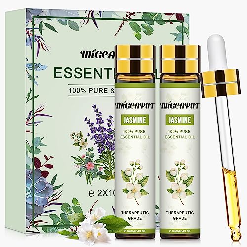 MIGCAPUT Jasmin Eterisk Olja 2 x 10ML, 100% Ren Naturlig Aromaterapi Eteriska Oljor Set, Terapeutisk Kvalitet Jasminolja för Luftfuktare Diffusor, SPA, Massage, Sömn, Tvål