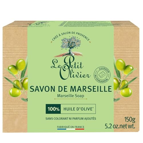 LE PETIT OLIVIER - Solid Marseille Olivolja tvål - 72% vegetabilisk olja - traditionell tillverkning - utan parfym eller tillsatt färg - tillverkad i Frankrike - 150 g