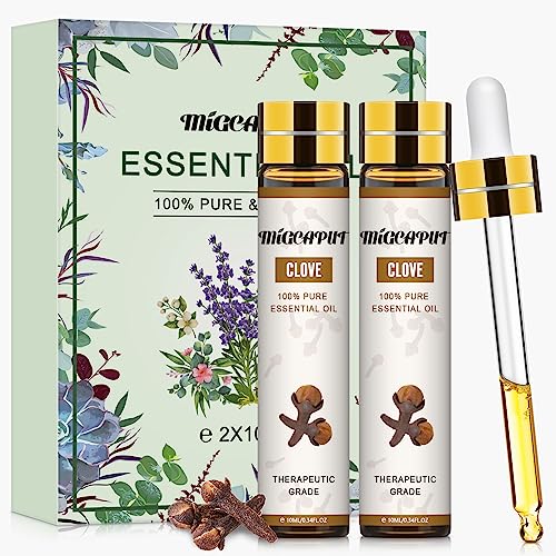 MIGCAPUT Kryddnejlika Eterisk Olja 2 x 10ML, 100% Ren Naturlig Terapeutisk Kvalitet Kryddnejlika Olja, Aromaterapi Eteriska Oljor för Luftfuktare Diffusor, SPA, Massage, Sömn, Tvål