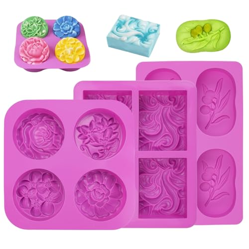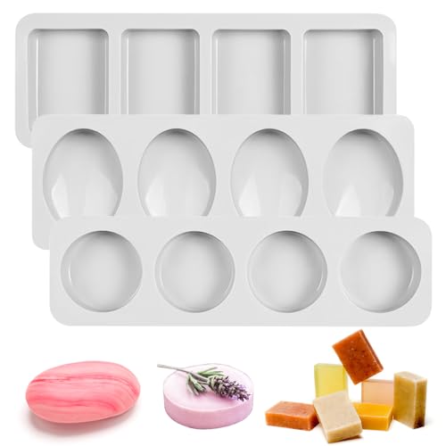 Sporgo 3 stycken silikonform tvålformar: 4 kavities tvålform silikon rektangulär oval silikonform, tvålformar för gjutning för gör-det-själv hemmagjorda hantverk, lätt att forma