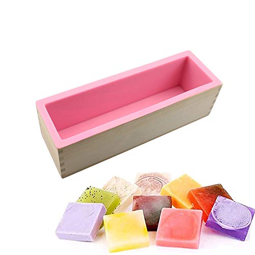 DIY Tvålform Silikon Rektangel 1200ml inkl. Trälåda & Lock - Rosa - Rosa