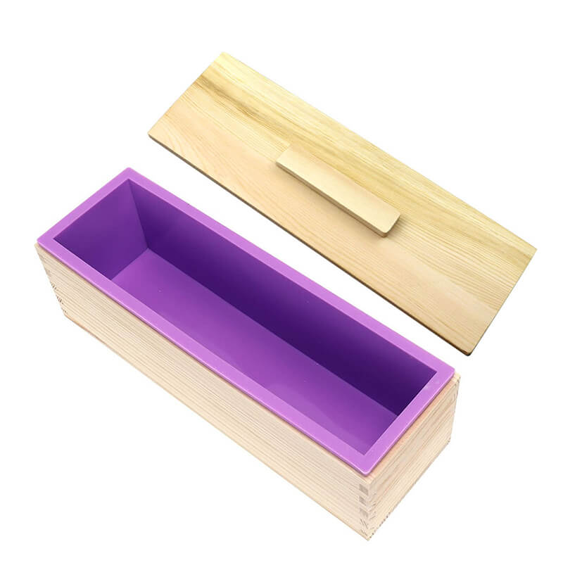 DIY Tvålform Silikon Rektangel 1200ml inkl. Trälåda & Lock - Lila - Lila
