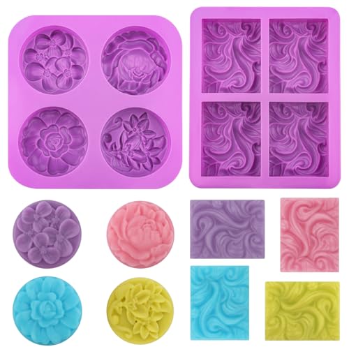 2 stycken tvålformar silikon, silikonformar tvål, gjutformar silikonformar tvål, hemlagad tvålform, tvålgjutform, vågig rektangulär och rund blomma, för tvål gör-det-själv