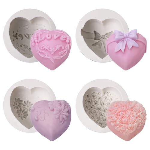TRUEIN tvålformar silikon, 4 stycken silikonform tvål, gör-det-själv 3D handgjord tvålsilikonform, handgjord tvålform, silikonform tvålblomma för gör-det-själv hemmagjort hantverk (blå rosa lila)