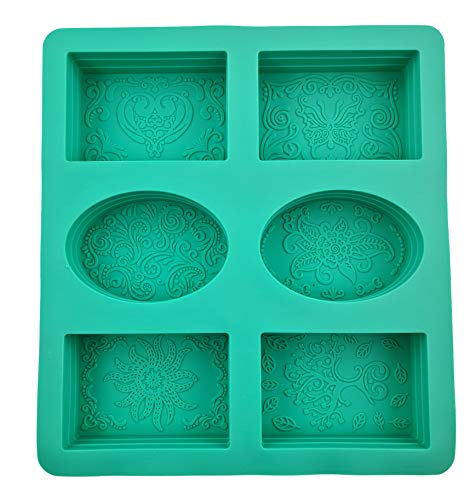 Seifenprofis silikonform (6 håligheter med mönster), tvålform, rektangulär, oval med mönster – badbomber, gör-det-själv, handgjord tvål