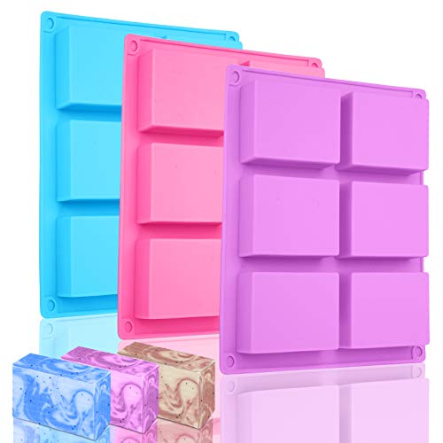 Bolatus 3 stycken rektangulära silikonformar, tvålform, 6-grottor, silikonformar, tvål, gör-det-själv, silikonform för bakning, kakor, choklad, biscuit, isbitar, hemgjort handarbete (rosa + blå + lila