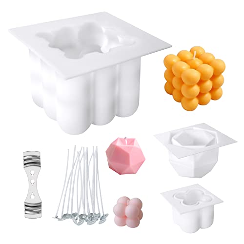 URAQT Ljusformar, 3 Stycken Silikonljusformar med 15 Stycken Ljusveke och 2 Stycken Centreringsanordning I Rostfritt stål, återanvändbara DIY-ljusformar I Silikon Tvålform för Ljustillverkning Doftljustvål Godisfestdekoration