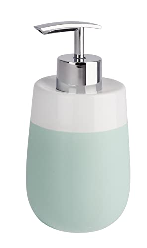 WENKO Tvålpump Malta, påfyllningsbar tvåldispenser för flytande tvål och lotion av högkvalitativ keramik, 7,5 x 15 x 8 cm, kapacitet 290 ml, mint/vit