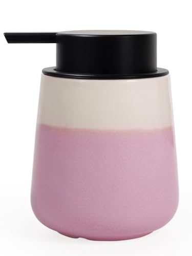 Autumnlife Tvålpump keramik diskmedelsdispenser rosa, 350 ml påfyllningsbar tvåldispenser med stort pumphuvud, reaktiv glasyr porslin tvåldispenser lämplig för badrum, kök