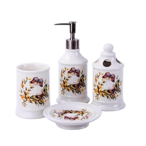 Lantligt vintage badrumsset fjärilar badrumstillbehörset tvålpump WC-borste keramik (set med 4 st)