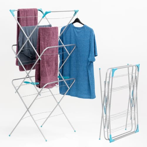 Anika 66399 3-nivås Concertina Airer/15 m torkutrymme/kläder torkning för tvätt, inomhus och utomhus/vikbar stående torkställning med hörnutrymmen för hängare