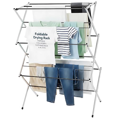 Visas av Jack Portabel hopfällbar klädtorkställ, infällbar torkställning för kläder, underkläder, handdukar, linnen, tvätt hem lägenhet, metall kromfinish