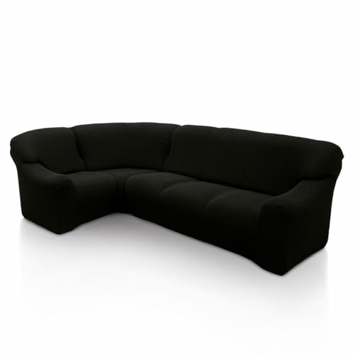SOFASKINS Superelastiskt hörnsoffa, tvättbar, hög kvalitet, andas, bekvämt och hållbart, sofföverdrag till soffan, lätt att installera, mått (340–540 cm), färg svart