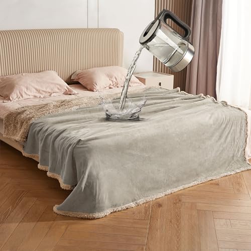 Catalonia Classy Vattentät sängfilt, extra stor soffa, tvättbar filt, sängfilt, 203 x 229 cm, varm filt i sherpa-fleece