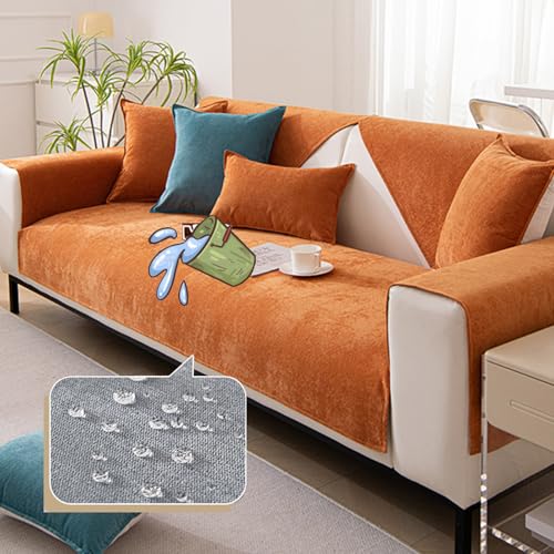 L -formad sektionssoffa täcker vattentät och tvättbar, soffa slipcovers för 3 sittdyna, soffskydd med vattentätt och urinbarriärlager Orange 90 * 160
