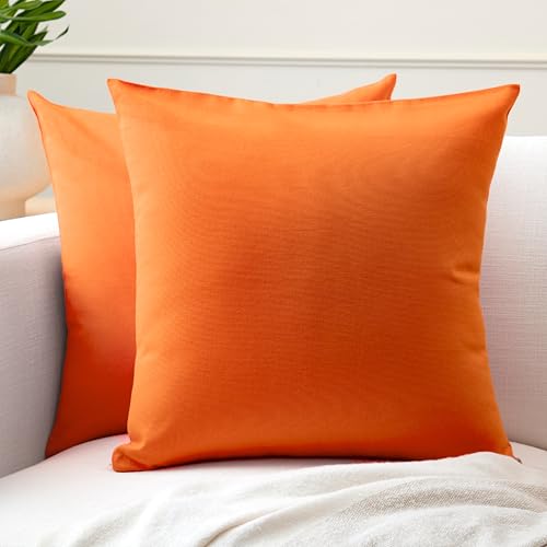 Encasa Homes kuddfodral 2 st set (40 x 40 cm) - orange - enfärgad bomullskanvas, dekorativ stor fyrkantig färgglad tvättbar prydnadskudde fodral för vardagsrum, soffa, sovrum, hem och hotell