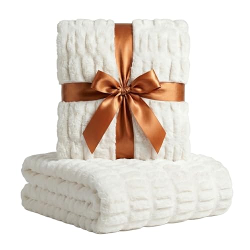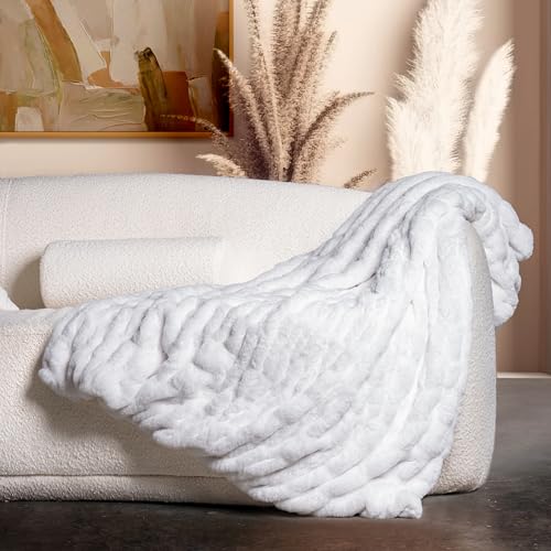 Luxury Concepts Lätt fuskkaninpäls prydnadsfilt, rynkad elegant skrynkelbeständig, antistatisk och tvättbar för bäddsoffa, 50 x 60 tum (vit)