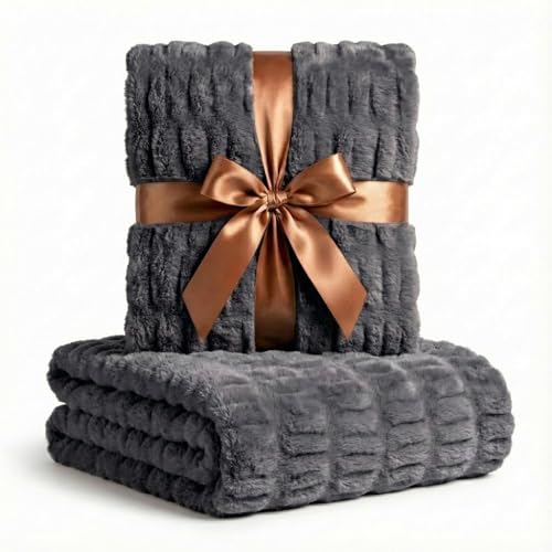 Lyxiga koncept lätt fuskkaninpäls prydnadsfilt, rynkad elegant skrynkelbeständig, antistatisk och tvättbar för bäddsoffa, 127 cm x 152 cm, mörkgrå