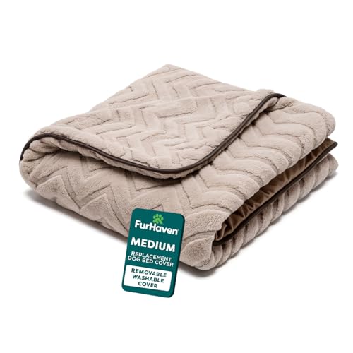 Furhaven ersättning säng överdrag för husdjur – plysch sammet vågor perfekt komfort soffa tvättbar hundsängöverdrag, brunsten, medium