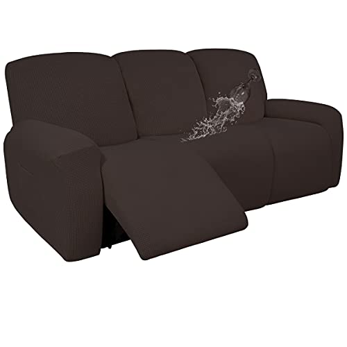 Lättgående 100% dubbelt vattentätt vilstol soffskydd, 8-delat stretchavslappnat sofföverdrag med ficka, Jacquard 3-sits soffa överdrag läckagesäker tvättbar (soffa, choklad)