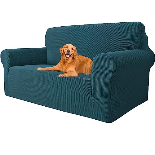 YSTELLAA 2-sits sofföverdrag med armstöd, stretch sofföverdrag, repbeständigt universellt soffskydd, tvättbar halkfri soffa, fläckbeständig, mörkgrön