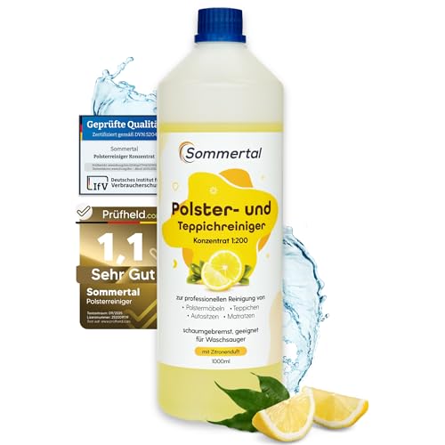 Sommertal Klädsel- och mattrengörare, 1 l professionellt koncentrat, för över 40 tvättprocesser, lämplig för soffa, klädsel, bilsäten, matta, madrass, tvättdammsugare, våtdammsugare och handtvätt