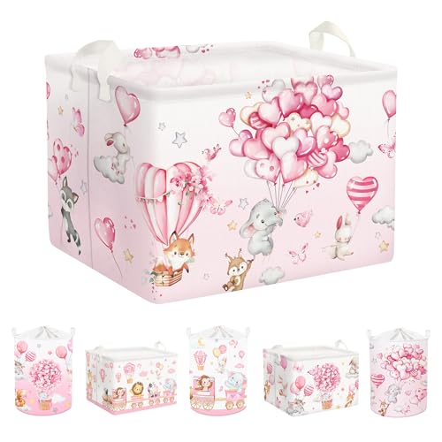 Clastyle varm ballong djur barn tvättkorg med lock vikbar rosa kläder leksak förvaringskorg pojkar flickor förvaringslåda för babyrum badrum, hjärta, 40 x 30 x 30 cm