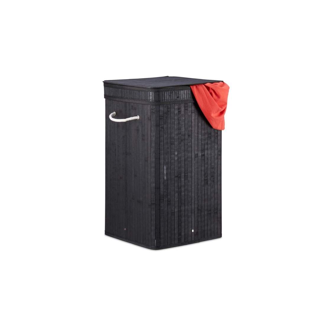 Hopfällbar Tvättkorg Bambu 72L Grå Med Lock