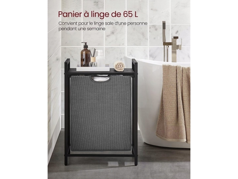 Vasagle Laundry Basket, Tvättkorg, Utdragbar Och Löstagbar Tvättsäck, Hylla, Metallram, 65 L, 50 X 33 X 72 Cm, Svartgrå