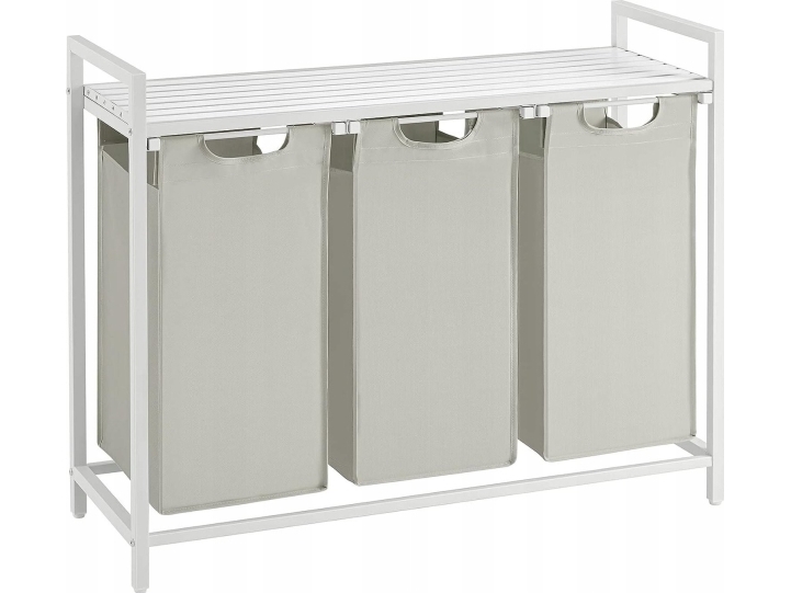 3-fack tvättkorg med hylla & 3 löstagbara fickor tvättkorg 66,5 x 33 x 72 cm