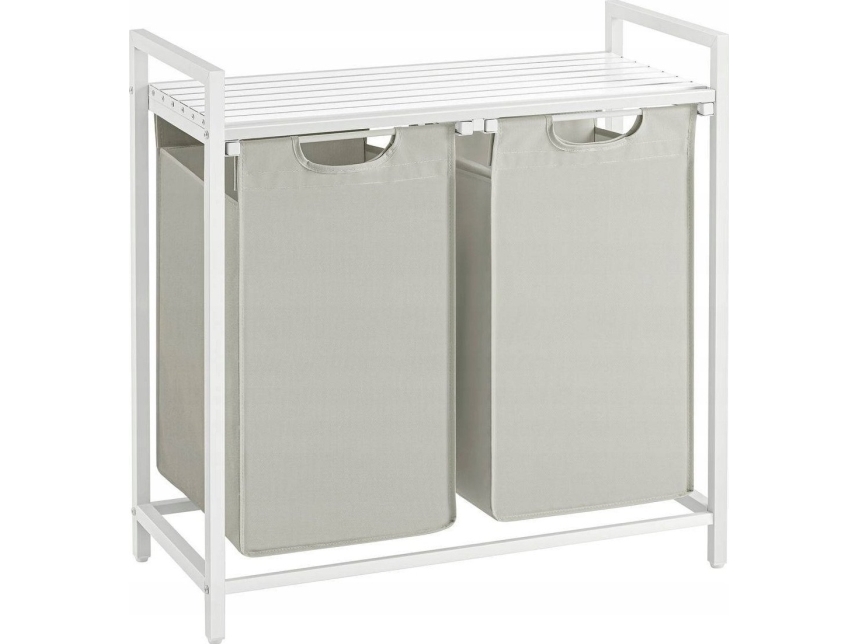 Tvättkorg med 2 fack och hylla - Vit/Grå