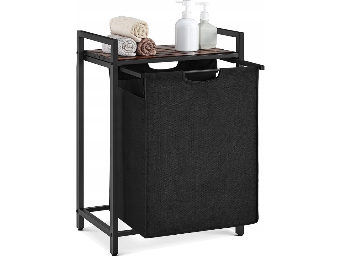 Utdragbar tvättkorg med hylla och avtagbar påse