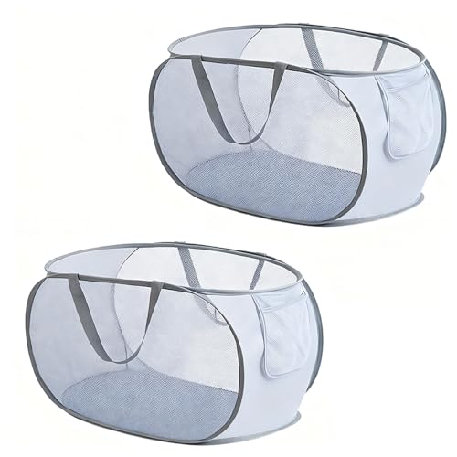 Qtopun Mesh tvättkorg, 2-pack tvättkorg bärbar smutstvättkorg hopfällbar hopfällbar korg för sovrum, barnrum, studentrum och rese-gul, lila
