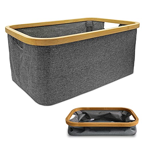 DOKRVLOQ Tvättkorg vikbar 50 l grå idealisk som hopfällbar förvaringskorg naturligt bambutyg vikbar korg förvaring