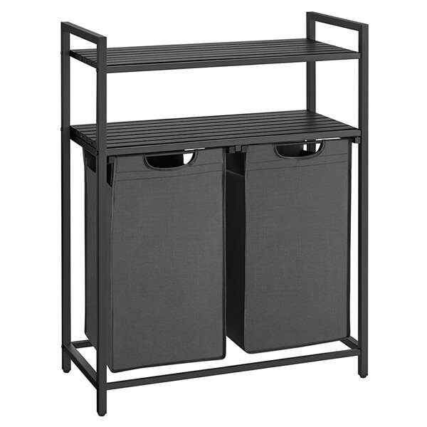 Tvättkorg med 2 fack och 2 hyllor - Svart/Grå