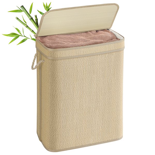 Songmics Tvättkorg i Bambu med Handtag, 150l, Naturbeige