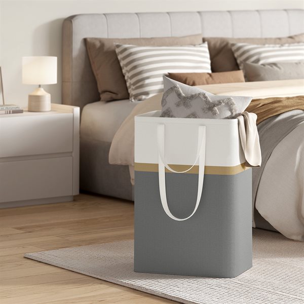 IHOMAGIC bärbar tvättväska, hopfällbar tvättkorg med handtag 60L 2 Sections Mörkgrått