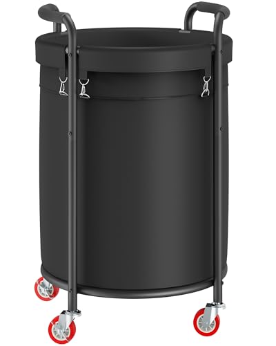 Hushåll Essentials rund tvättkorg med hjul, koppar, svart stor