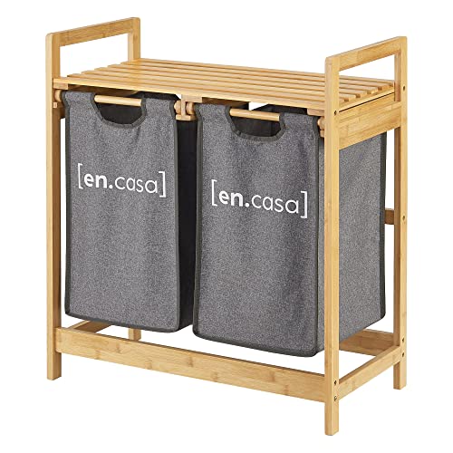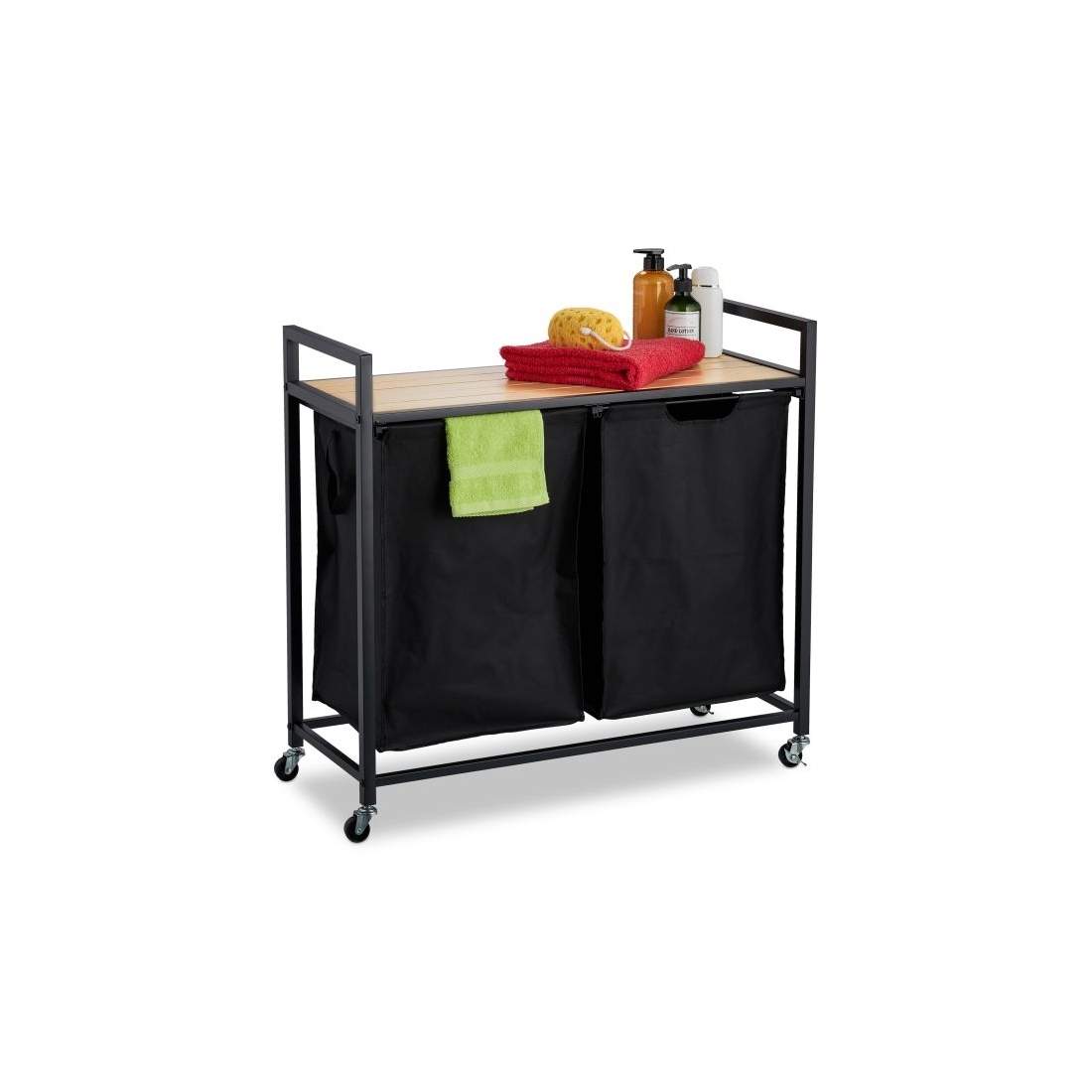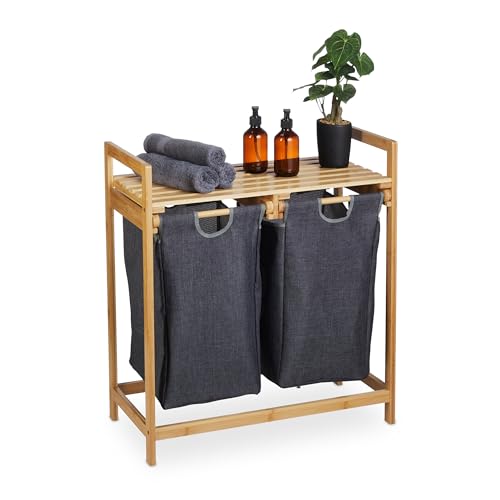 Relaxdays Bambu tvättsorterare med hylla, 2 lådor, utdragbar och bärbar, tvättkorg 25 L, natur, 1 st