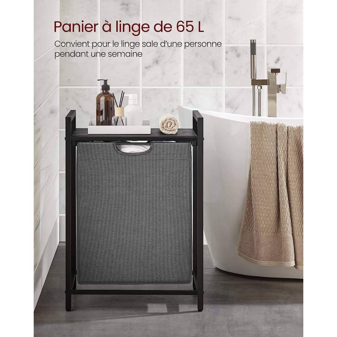 VASAGLE tvättkorg, tvättsamlare med hylla, tvättlåda, tvättsäck av avtagbart Oxford-tyg, metallram, 65 L, 50 x 33 x 72 cm, duvgrå BLH101W03