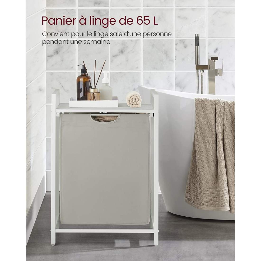 VASAGLE Tvättkorg, tvättkorg, tvättsorterare med utdragbar och avtagbar tvättväska, hylla, metallram, 65 L (19,7 x 13 x 28,4 tum, vit UBLH101W01