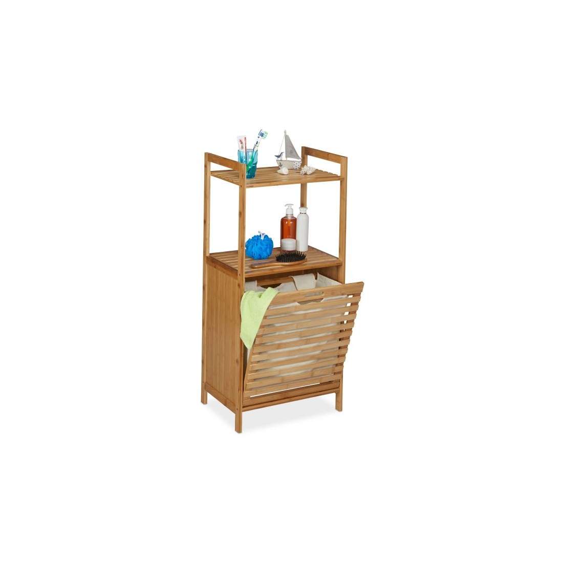 Relaxdays Tvättkorg hylla, bambu tvättkorg med hylla, HBT: 73,5 x 64,5 x 33 cm, 3 fack, badrumshylla, natur/beige