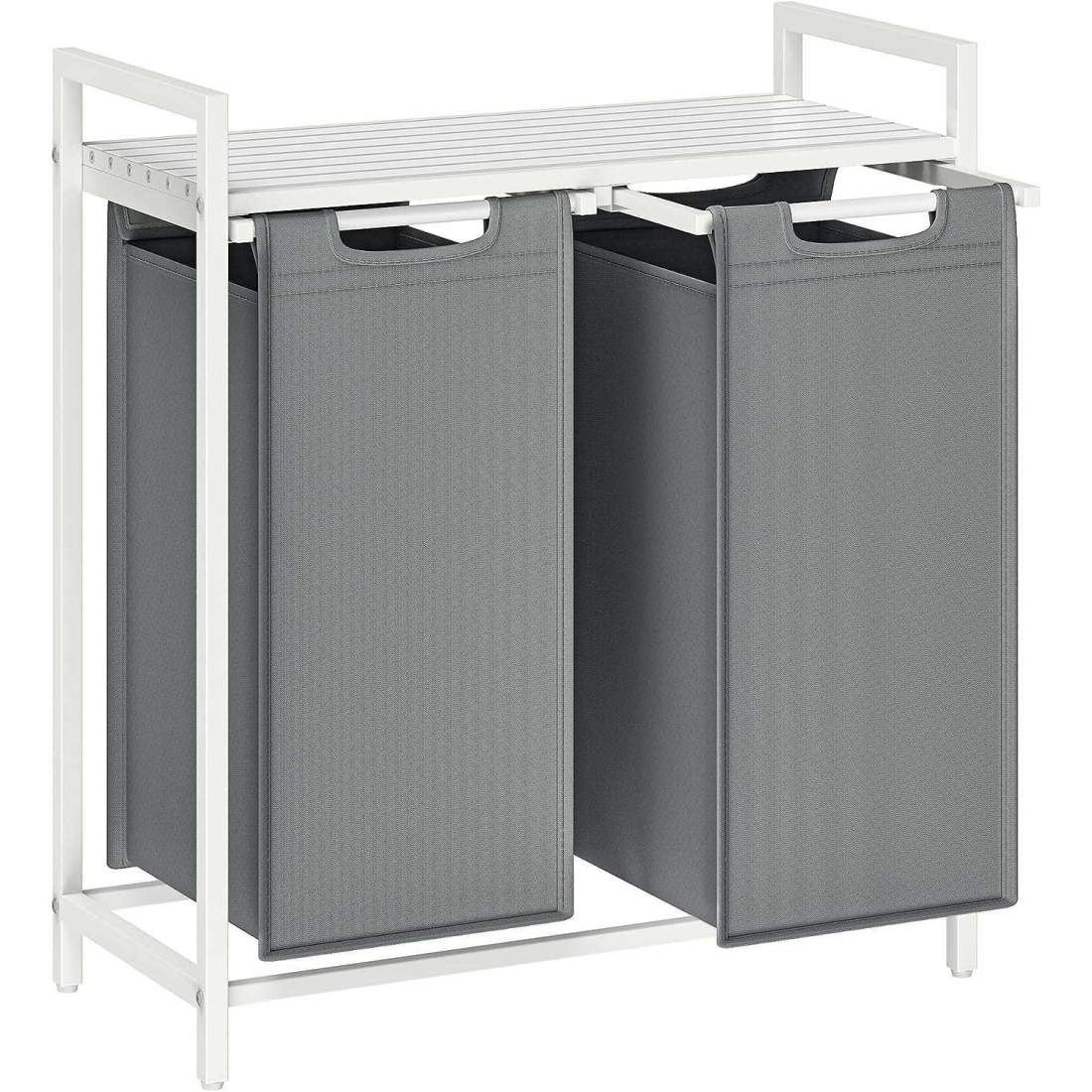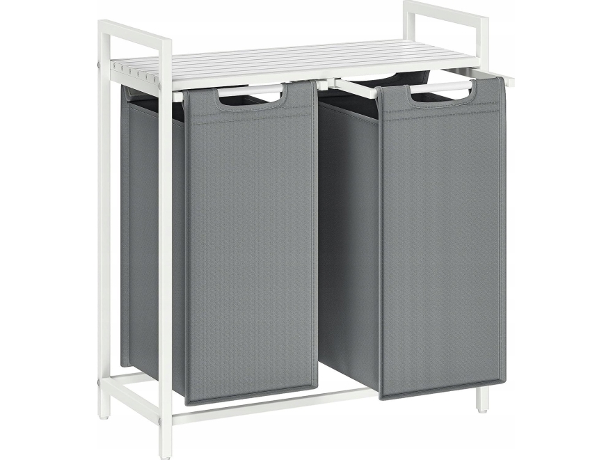 Tvättkorg med 2 fack och hylla - Vit/Grå