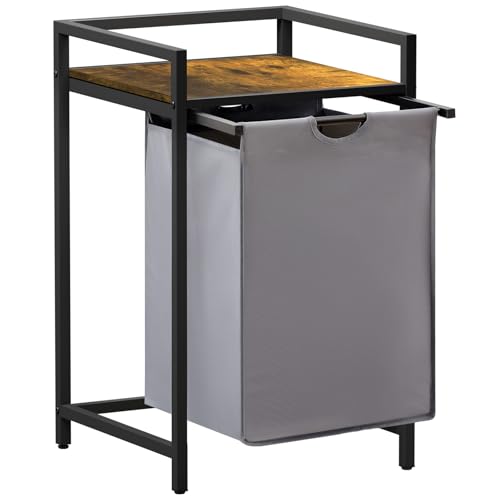 Utdragbar Tvättkorg med Hylla, 65L, Rustik Brun
