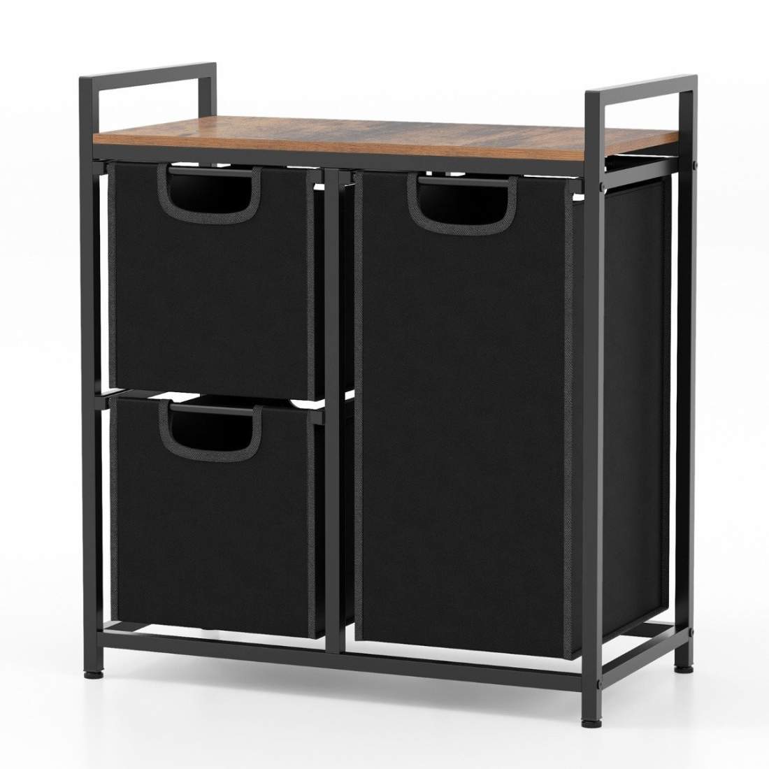 GOPLUS Tvättkorg med hylla, tvättkorg med 3 fack och avtagbara innerfickor och handtag, tvättlåda för smutstvätt för tvättstuga, badrum, sovrum
