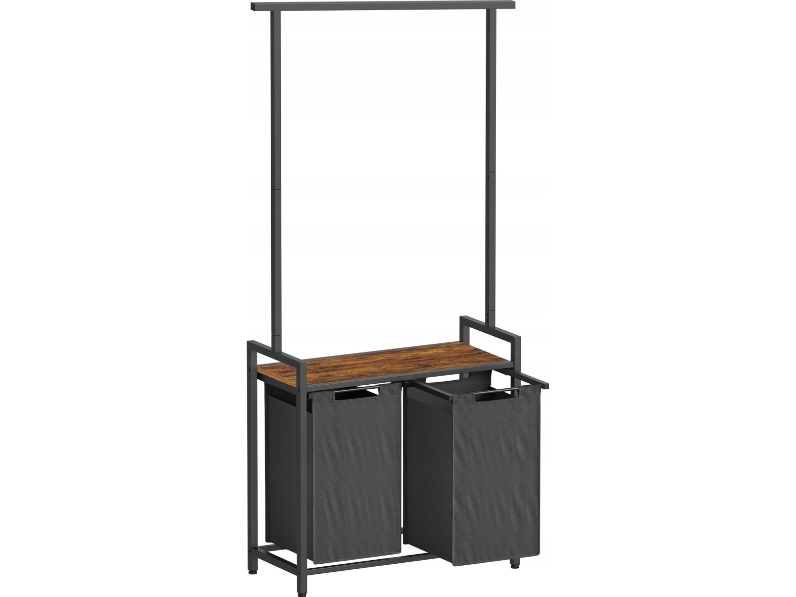 Vasagle Tvättkorg, 2 Sektioner Med Hängande Hylla, Löstagbar Hyllkorg, 28,7" X 13" X 69,7", Rustik Brun Och Svart