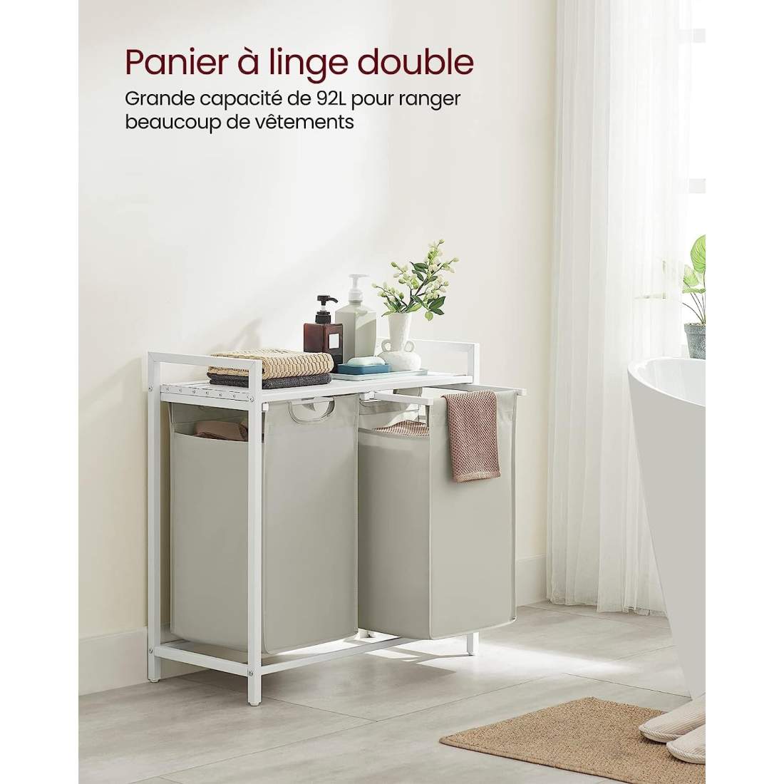 Songmics Tvättkorg med 2 fack och hylla – 92 liter Vit