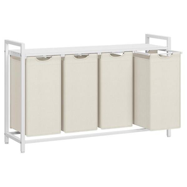Herture Tvättkorg med hylla, tvättkorg i 4 sektioner, tvättsorterare med utdragbara avtagbara stora påsar och hjul, metallram, 4 x 60 l, vit PF07XLW